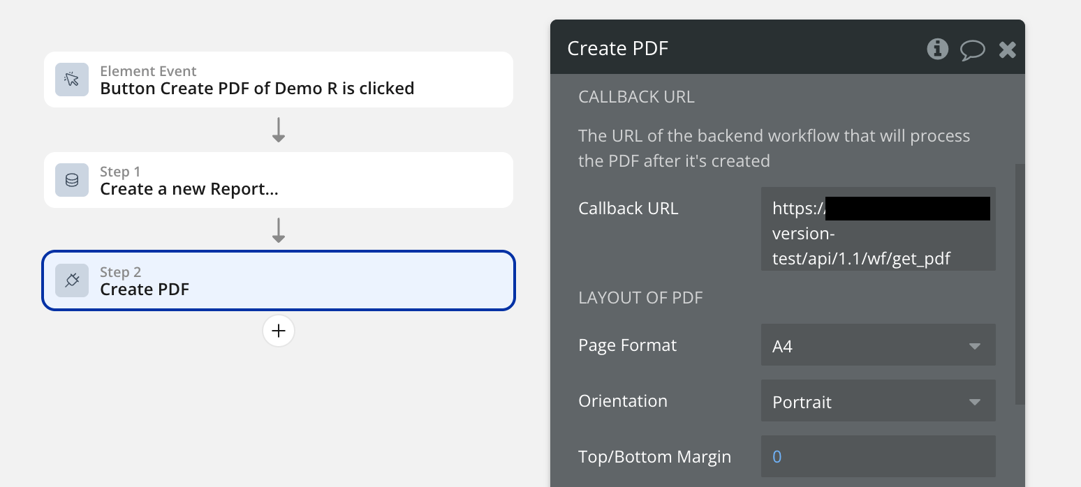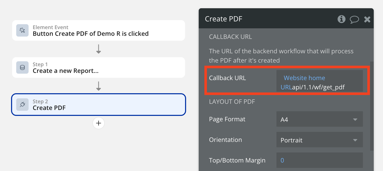 The Callback URL will represent a backend workflow that will be triggered once DocuPotion has created the PDF.
