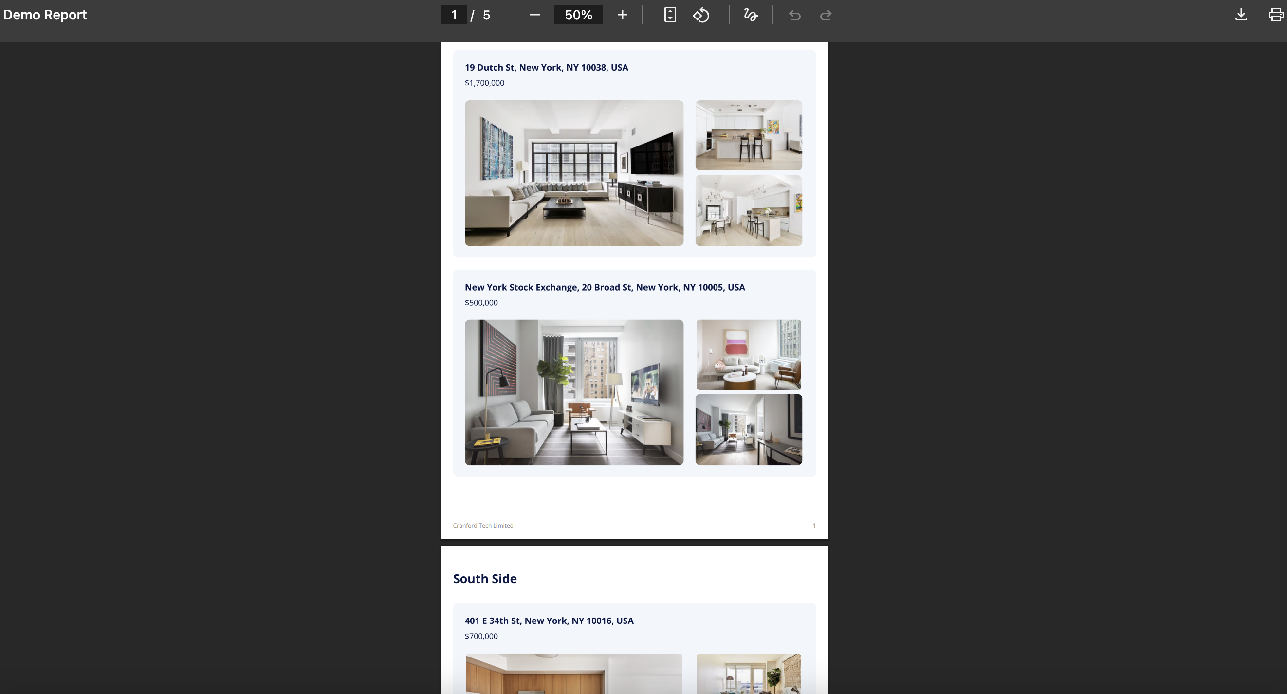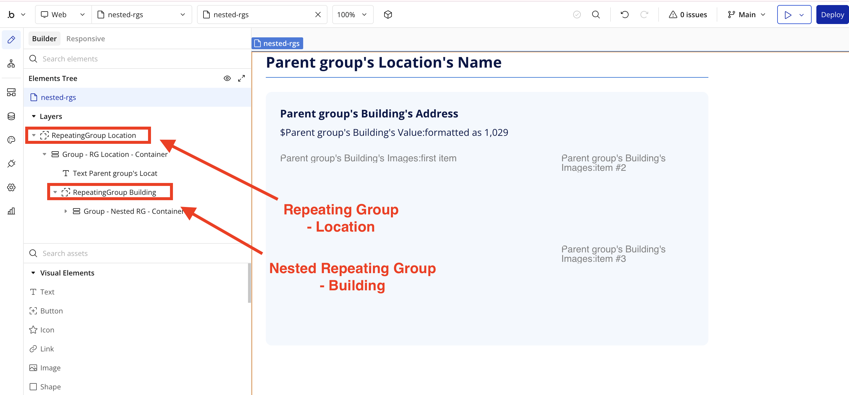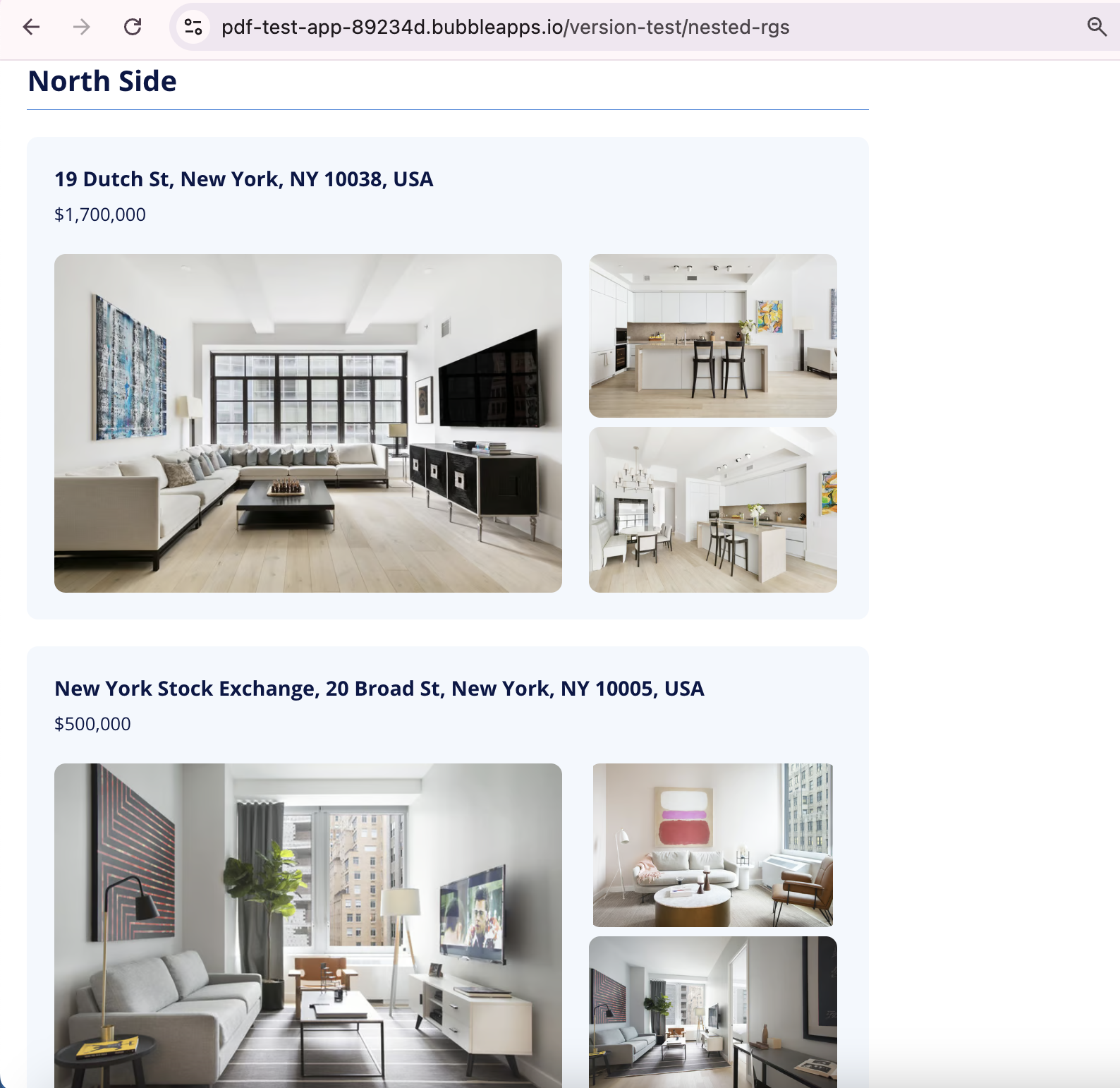 For example, the below target PDF page has a top-level repeating group where the data source is 'Location' and a nested repeating group where the data source is 'Building' (each Location has a number of Buildings):