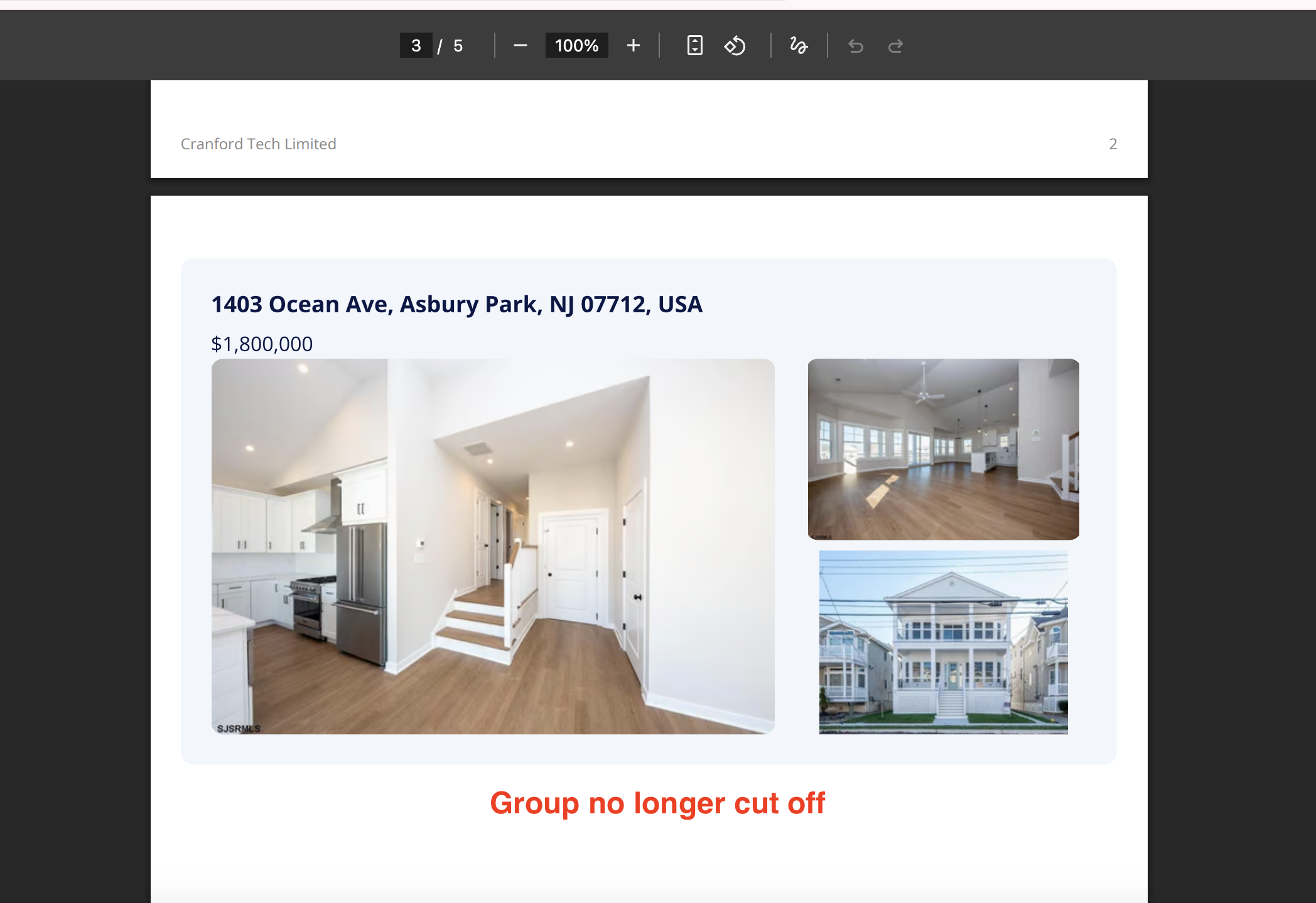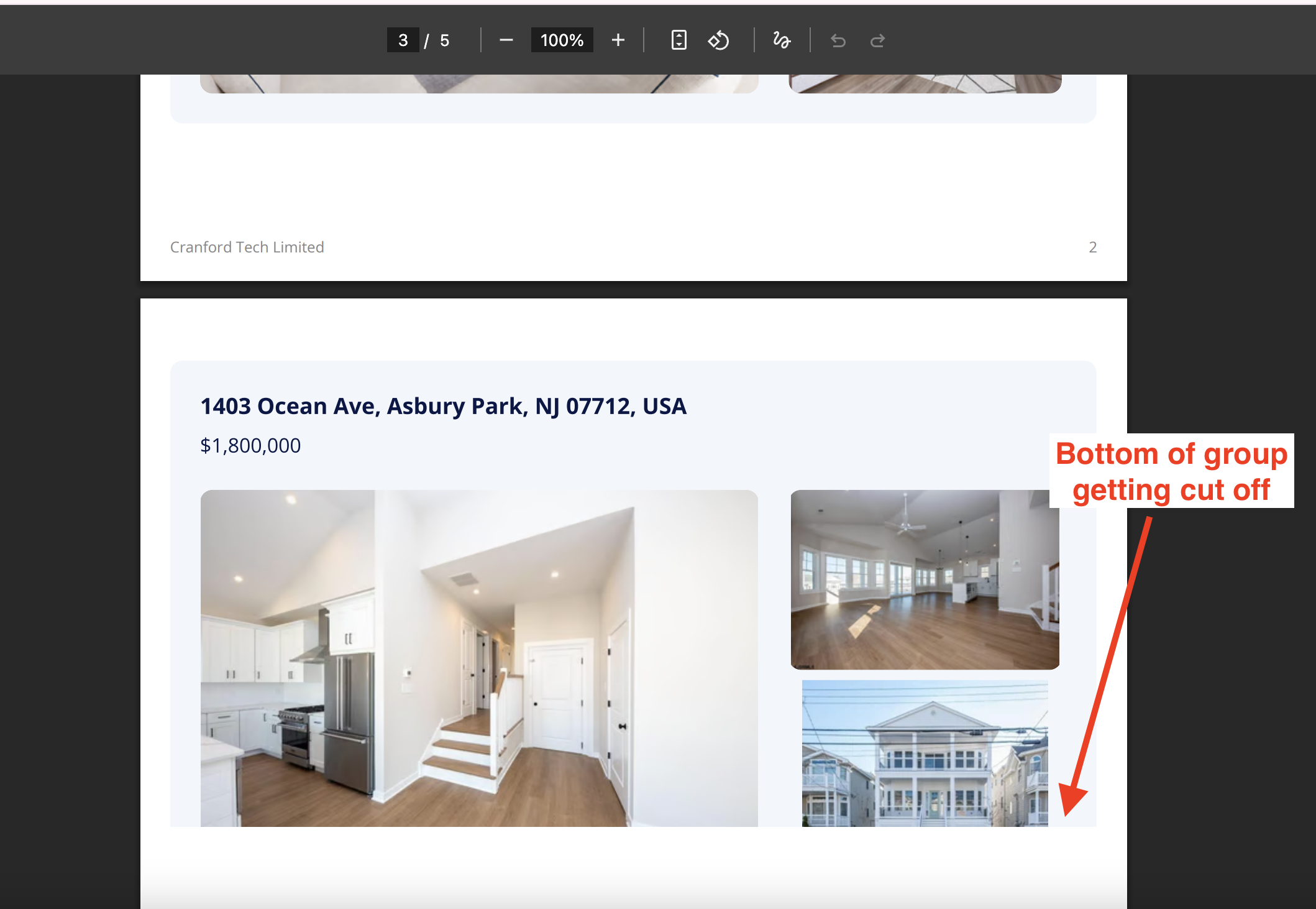 Here's how the PDF looks after adding the HTML element - the group is no longer getting cut off: