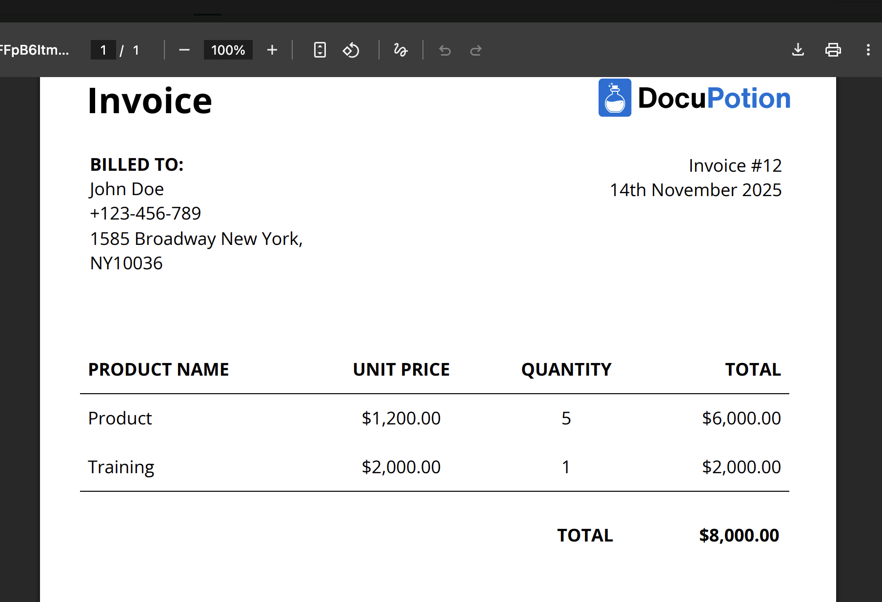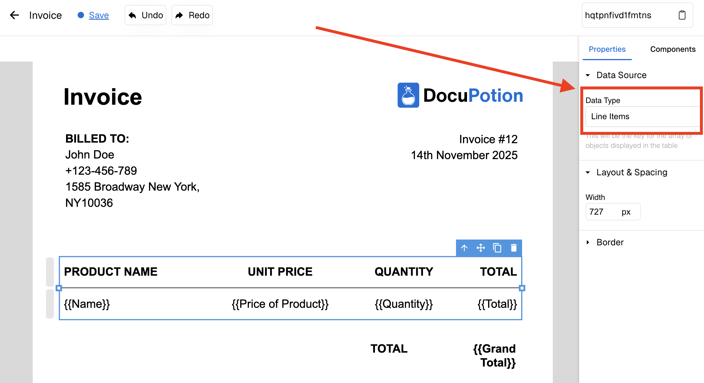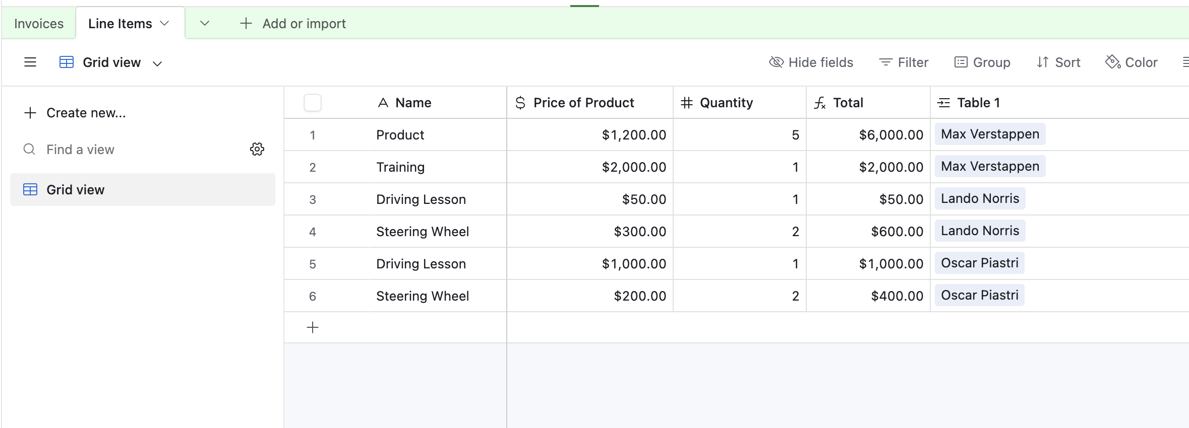 The Dynamic Table component allows you to use data from multiple linked records in your PDF.