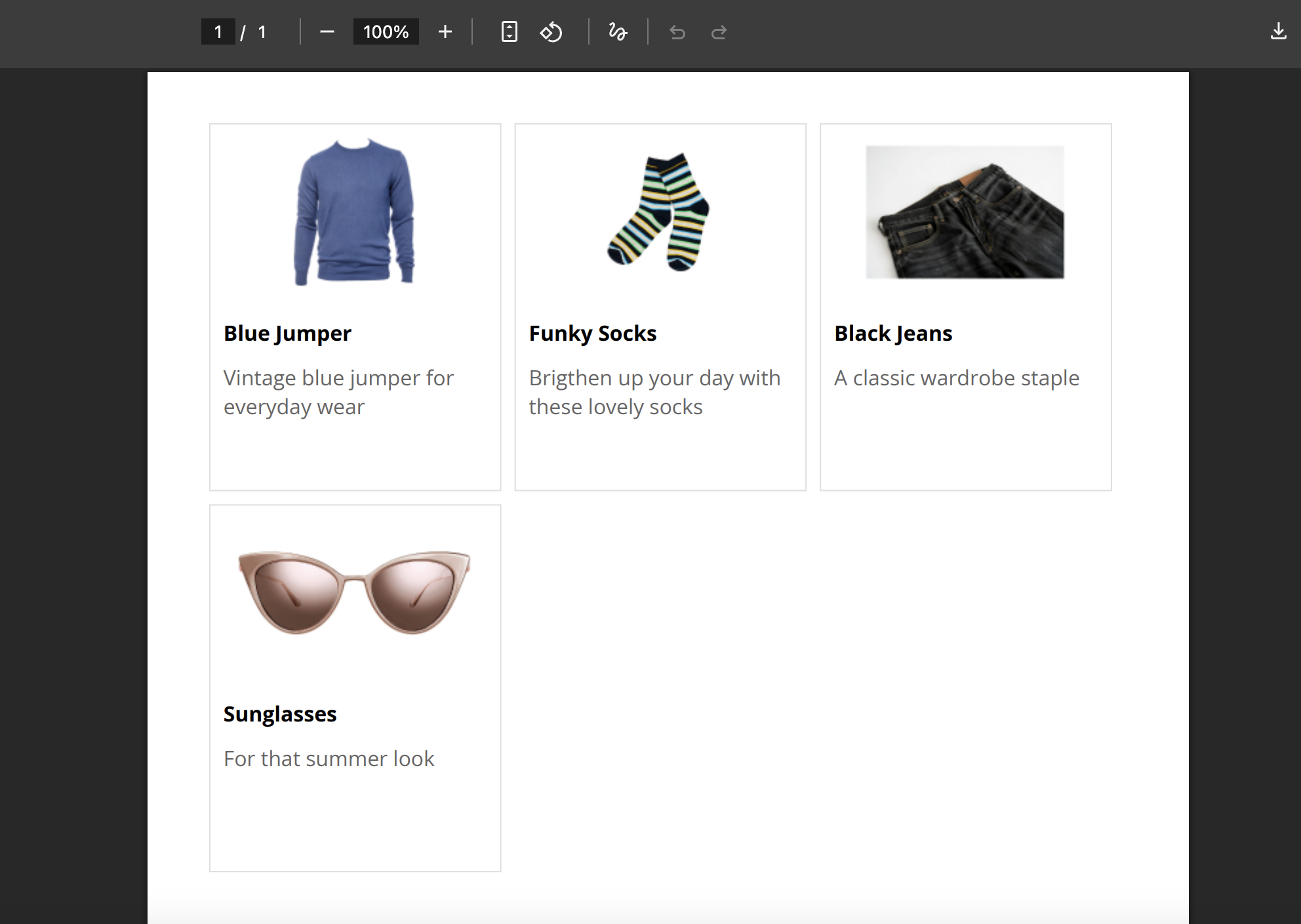 When your PDF is generated, the single item you designed gets repeated for each entry in your data array.